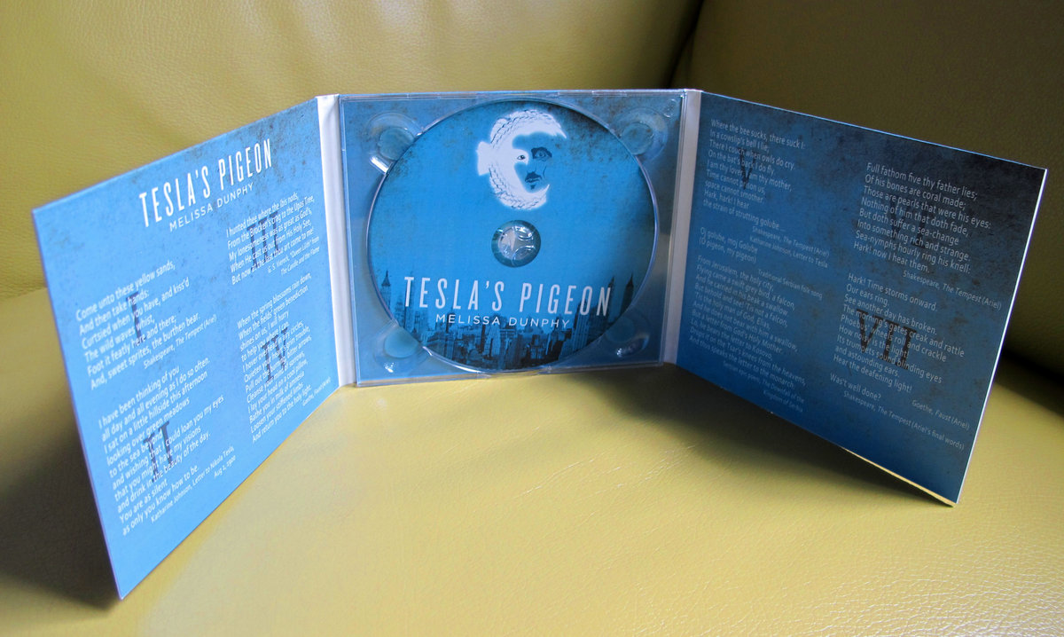 Both recordings of Tesla's Pigeon - orchestral and piano-vocal - in a beautiful gatefold card case with artwork by Robinson Smith.
